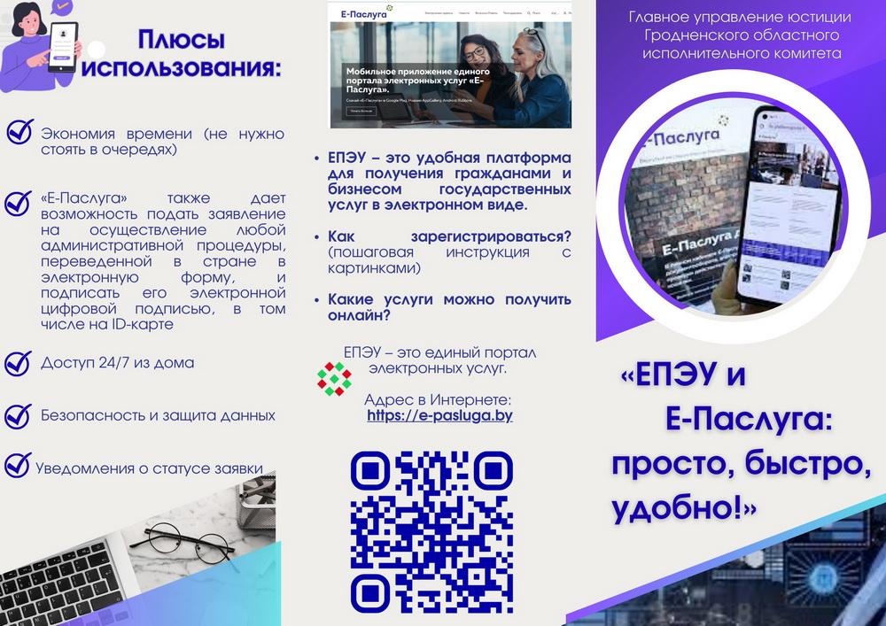 Республиканское унитарное предприятие «Национальный центр электронных услуг» в рамках информационной кампании предлагает государственные электронные сервисы (услуг и административных процедур), в том числе востребованные при обращении граждан в очном формате в службу «одно окно», реализованные на ЕПЭУ и в мобильном приложении «Е-Паслуга».